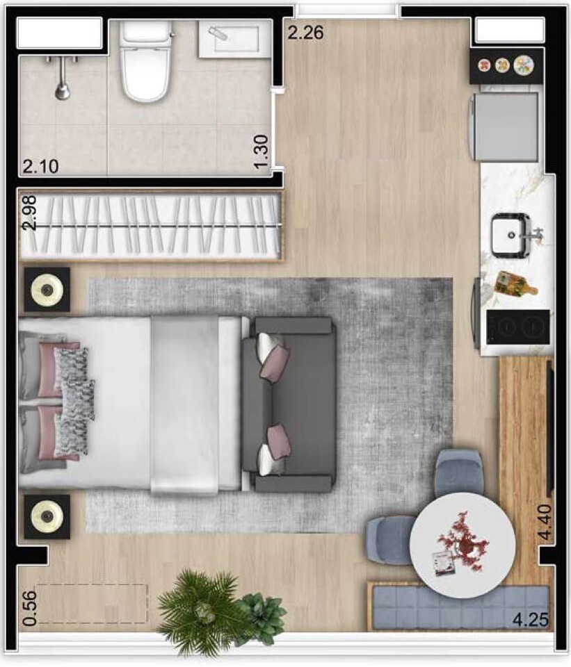 Área Útil33,43m²
