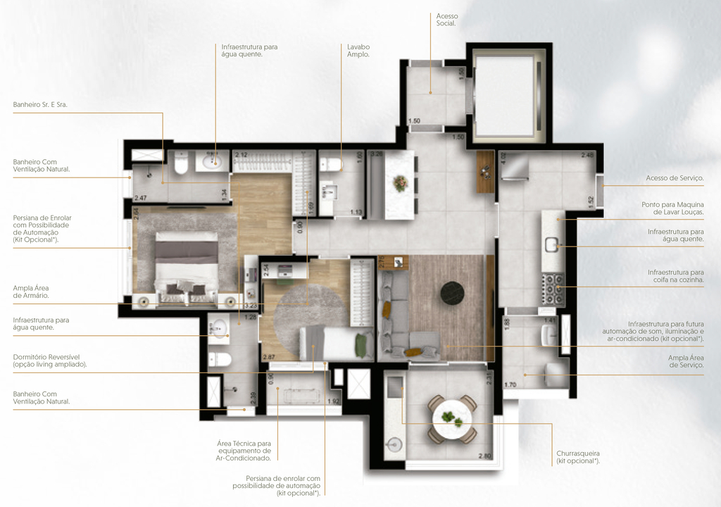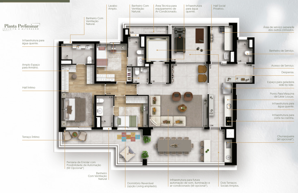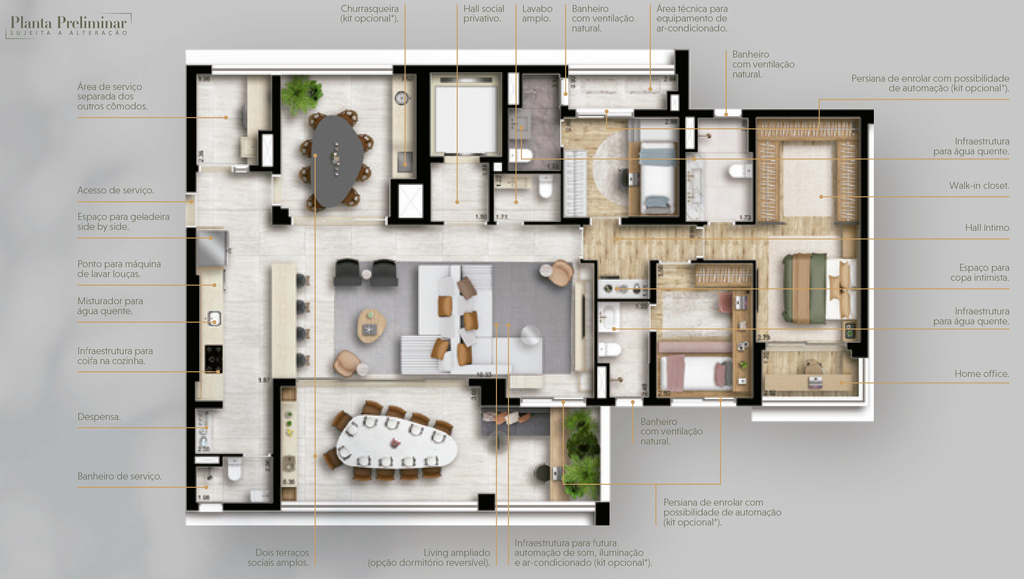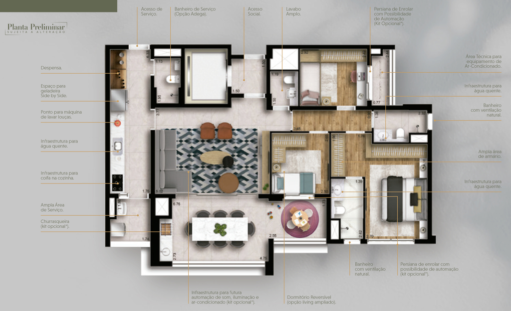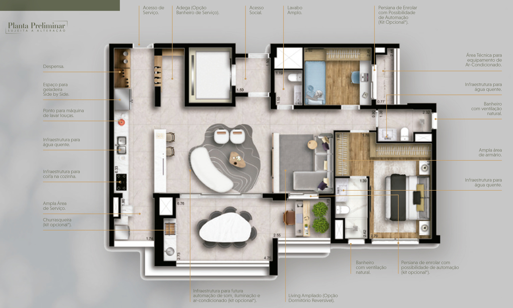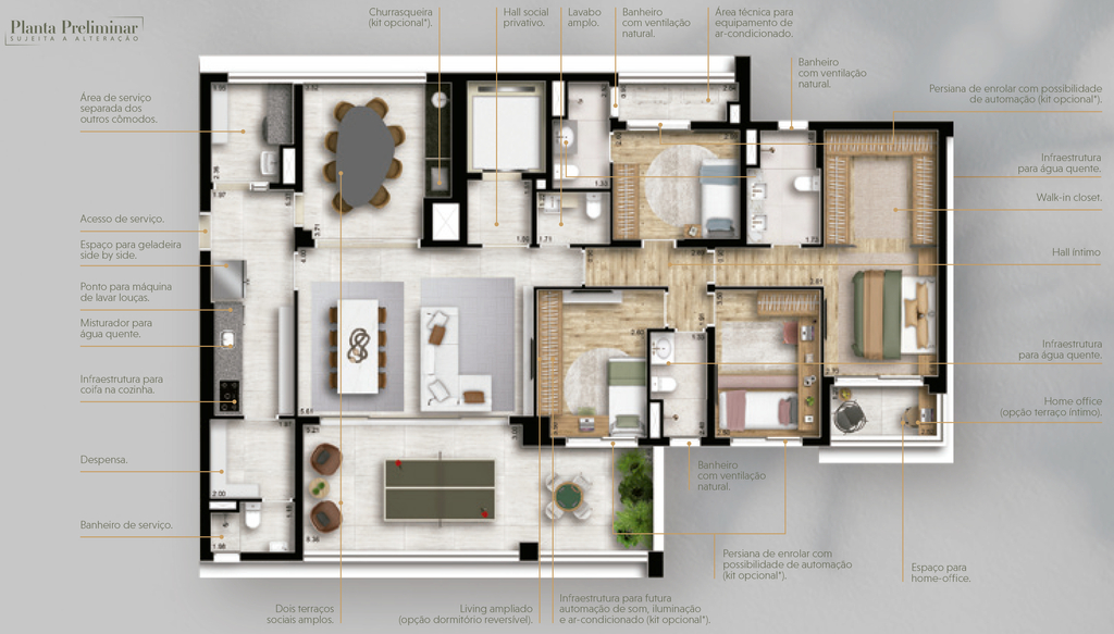 Desfrute de um estilo de vida privilegiado no Loomi Chácara Santo Antônio, onde cada apartamento possui dois terraços privativos, proporcionando espaços ao ar livre para relaxar e apreciar a vista panorâmica da cidade. Preço e disponibilidade do imóvel sujeitos a alteração sem aviso prévio.