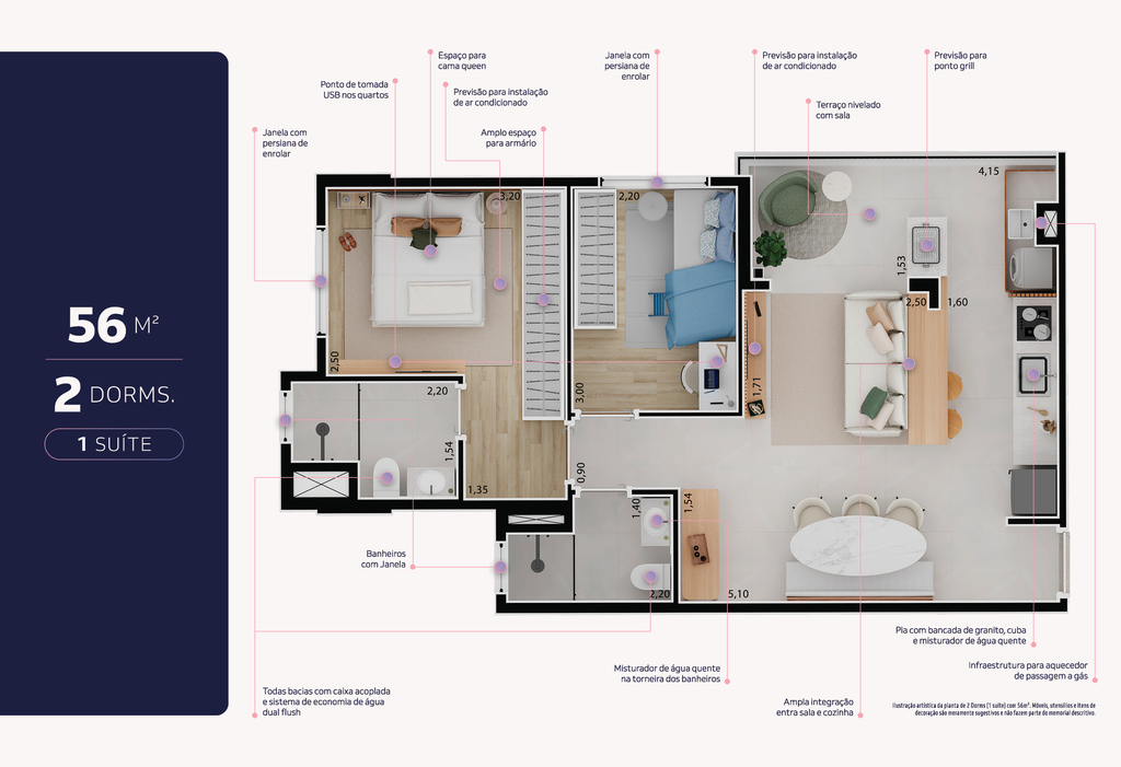 Área Útil56,87m²
